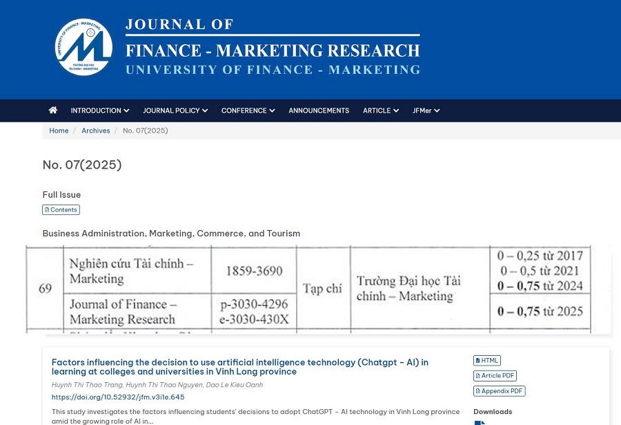 Tạp chí Nghiên cứu Tài chính – Marketing, kỳ tiếng Anh được HĐGSNN công nhận khung điểm 0 - 0.75 điểm từ năm 2025