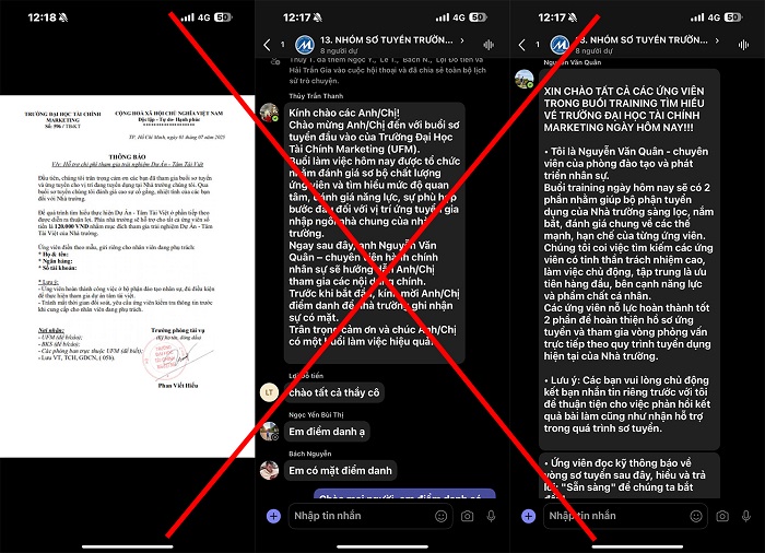 Theo phản ánh, các đối tượng mạo danh đại diện UFM, liên hệ với ứng viên qua điện thoại, thông báo mời phỏng vấn. Sau đó, yêu cầu ứng viên tham gia các hội nhóm trên MSTeam và tham gia vào dự án Tâm Tài Việt, đóng tiền, đầu tư sinh lời nhằm chiếm đoạt tài sản.