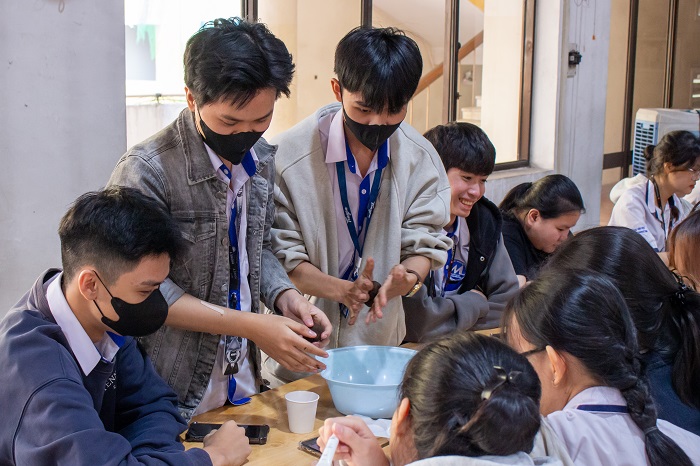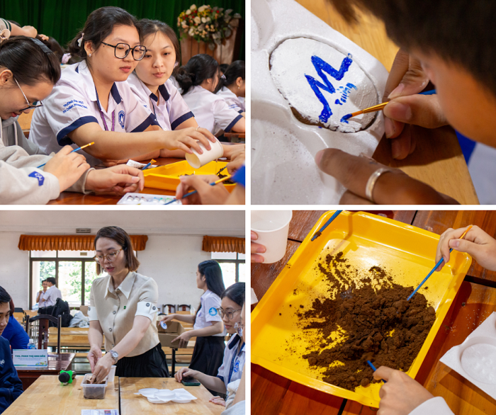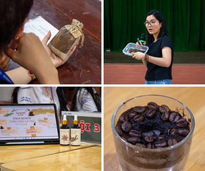 Sinh viên thực nghiệm với bã cà phê tái chế - Nguồn: Ban tổ chức