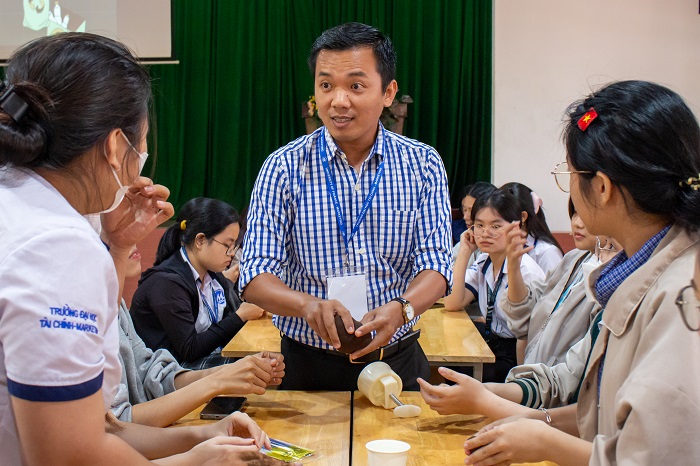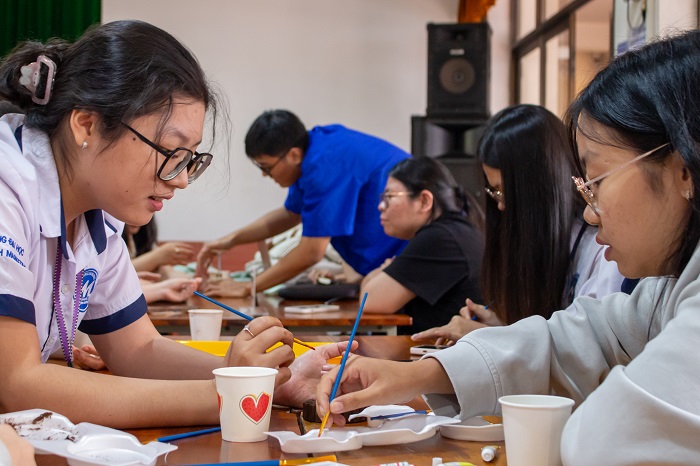 Sau phần tranh tài đầy kịch tính của các đội thi, không khí hội trường tiếp tục sôi nổi với hoạt động trải nghiệm dành cho sinh viên. Dưới sự hướng dẫn của Ban Tổ chức và các nhóm dự án, các bạn sinh viên được trực tiếp nhào nặn, pha trộn và thực hành với bã cà phê tái chế, từ những nguyên liệu tưởng chừng bỏ đi để tạo nên các sản phẩm thủ công độc đáo, nhiều sản phẩm ra đời ngay tại không gian sự kiện, vừa đa dạng, vừa đẹp mắt. Hoạt động trải nghiệm này không chỉ mang lại sự hứng thú, mà còn giúp sinh viên “chạm tay” vào quy trình tái chế, cảm nhận rõ hơn giá trị của mô hình kinh tế tuần hoàn và hiểu rằng mỗi ý tưởng xanh đều có thể bắt đầu từ những điều rất nhỏ và rất gần gũi.