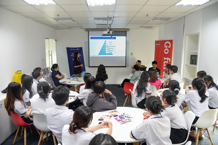 Với không khí đầy háo hức của mình, sinh viên được đi tham quan và giới thiệu về không gian làm việc tại doanh nghiệp. Không gian làm việc và cách bày trí tại đây rất hiện đại, tối giản nhưng không kém phần tươi tắn. Ngoài ra, đây cũng là cơ hội để các bạn có thể tiếp xúc, trò chuyện với các những người đã và đang làm việc trong lĩnh vực kế toán, kiểm toán nhiều năm liền. Sau khi đã đi tham quan xung quanh các bộ phận, các bạn sinh viên sẽ cũng nhau tập trung lại, nghĩ ngơi và trao đổi với nhau về các công việc, vị trí cũng như thông tin chung của công ty.
