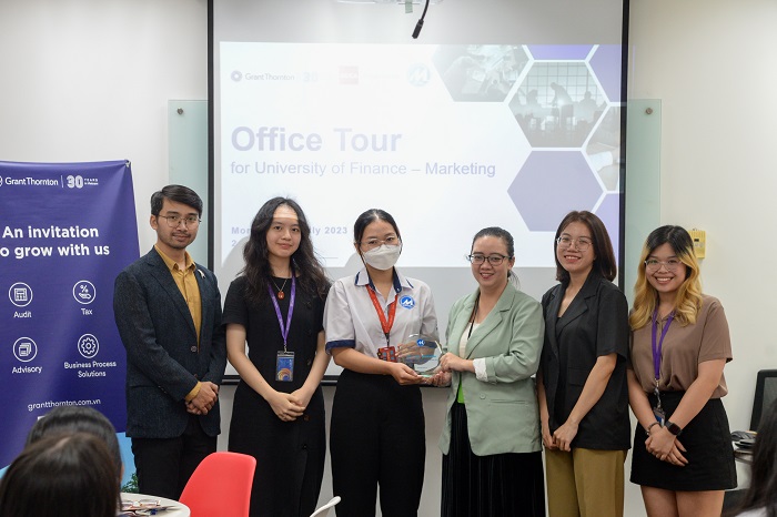 Sáng ngày 10/7/2023, Trường Đại học Tài chính – Marketing (UFM)) đã tổ chức tham quan thực tế dành riêng cho các bạn sinh viên ngành Kế toán (chuyên ngành Kế toán doanh nghiệp và Kiểm toán), tại Grant Thornton – một doanh nghiệp kiểm toán độc lập của công ty Grant Thornton quốc tế. Chương trình là cầu nối giữa sinh viên và doanh nghiệp, nhằm hỗ trợ sinh viên có thể tiếp cận với một môi trường làm việc chuyên nghiệp và có cái nhìn thiết thực nhất về ngành nghề kế toán – kiểm toán nói chung.