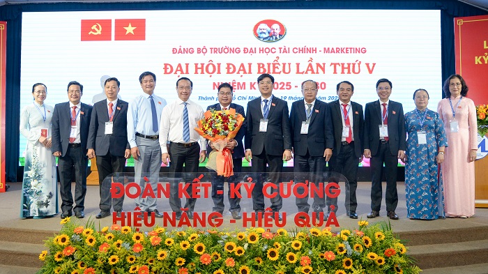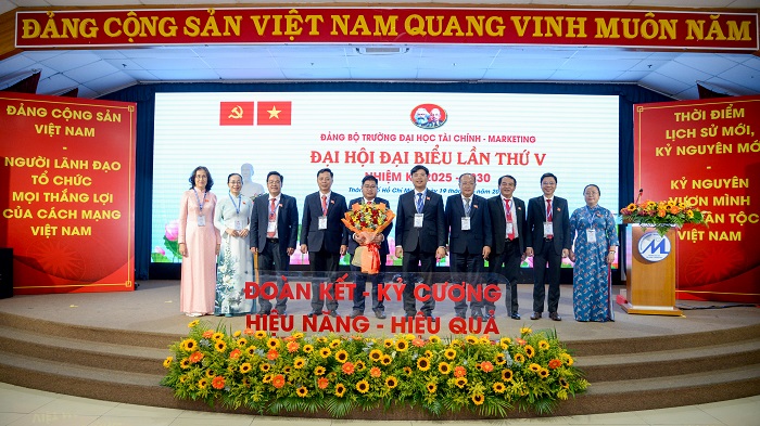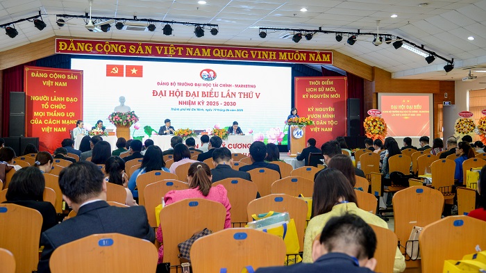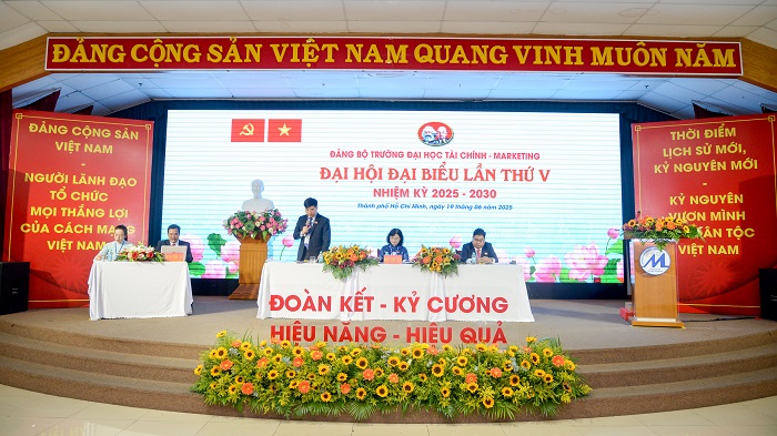 Ngày 19/6/2025, Đảng bộ Trường Đại học Tài chính – Marketing đã long trọng tổ chức Đại hội đại biểu lần thứ V, nhiệm kỳ 2025–2030. Đại hội diễn ra tại Hội trường 701, cơ sở 27 Tân Mỹ, phường Tân Thuận, TP. Hồ Chí Minh với sự tham dự của 100 đại biểu chính thức, đại diện cho 554 đảng viên trong toàn Đảng bộ với chủ đề “Đoàn kết – Kỷ cương – Hiệu năng – Hiệu quả”.