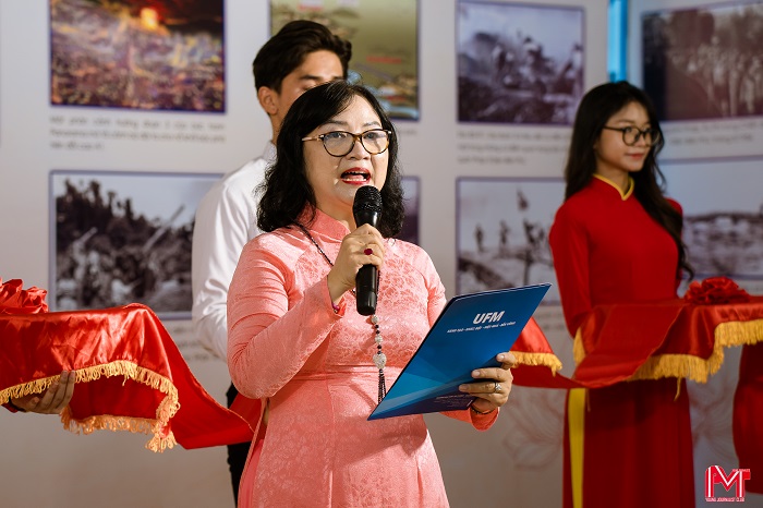 Đồng chí Hồ Thủy Tiên, Bí thư Đảng ủy UFM phát biểu Khai mạc triển lãm