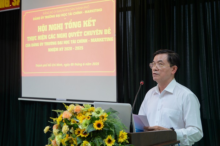 Chiều ngày 05/6/2025, Đảng ủy Trường Đại học Tài chính – Marketing đã long trọng tổ chức Hội nghị Tổng kết hiện các Nghị quyết chuyên đề của Đảng ủy Trường, nhiệm kỳ 2020 –2025 và đồng thời tuyên dương, khen thưởng các cá nhân đã đạt thành tích cao trong cuộc thi trực tuyến tìm hiểu về Đảng bộ Trường hướng tới chào mừng Đại hội Đảng bộ Trường Đại học Tài chính – Markering lần thứ V, nhiệm kỳ 2025 -2030 và Đại hội Đảng bộ UBND Thành phố lần thứ I, Đại hội Đảng bộ Thành phố lần thứ XII và Đại hội đại biểu toàn quốc lần thứ XIV của Đảng.