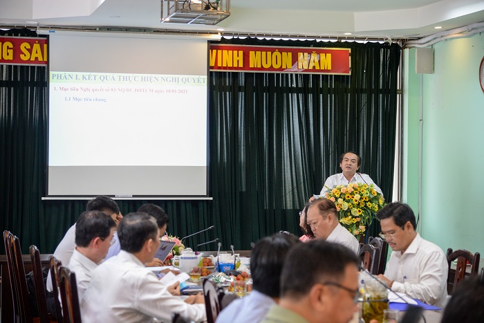 Phát biểu khai mạc Hội nghị, Đồng chí Hồ Thủy Tiên, Bí thư Đảng ủy đã thông tin đến Hội nghị, Đại hội Đảng bộ Trường Đại học Tài chính – Marketing lần thứ IV nhiệm kỳ 2020 - 2025 được tổ chức vào tháng 5/2020. Sau Đại hội, Đảng ủy Nhà trường đã có sự lãnh chỉ đạo quyết liệt và sâu sát tất cả các mảng hoạt động của Nhà trường, Đảng ủy đã ban hành và tổ chức triển khai thực hiện 09 Nghị quyết chuyên đề quan trọng nhằm cụ thể hóa các mục tiêu, nhiệm vụ phát triển nhà trường trên các lĩnh vực: đào tạo, nghiên cứu khoa học, hợp tác quốc tế; phát triển đội ngũ, cơ sở vật chất, tài chính, công tác sinh viên, đảm bảo chất lượng, quan hệ doanh nghiệp; công tác xây dựng Đảng và kiểm tra, giám sát. Đến nay, sau gần 05 năm triển khai thực hiện, các Nghị quyết chuyên đề đã từng bước đi vào thực tiễn, mang lại những chuyển biến tích cực, góp phần quan trọng vào việc nâng cao chất lượng giáo dục, đổi mới quản trị đại học và xây dựng tổ chức Đảng trong sạch, vững mạnh.