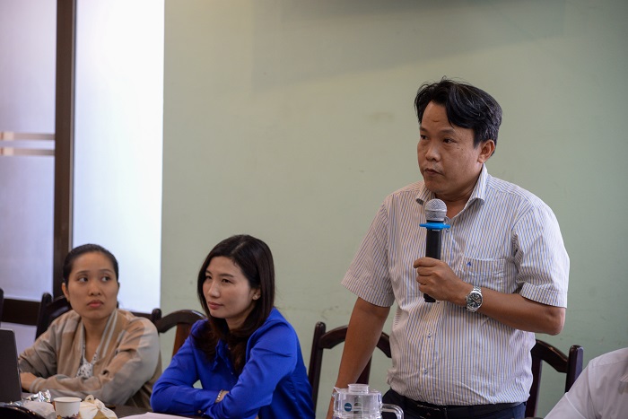 Đồng chí Trần Minh Tùng, Phó Trưởng phòng Quản lý tài sản và Công nghệ thông tin góp ý tại Hội nghị