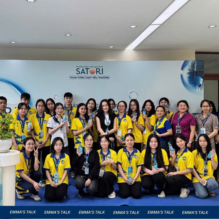 Chiều ngày 14/8/2025, Trường Đại học Tài chính – Marketing (UFM) tham gia chương trình hội thảo do ETUMC.CL tổ chức với chủ đề “Hiểu về chính mình khi xây dựng sự nghiệp cá nhân” cho giảng viên viên khoa Marketing và khoa Quản trị kinh doanh cùng 40 sinh viên của Trường tại Nhà máy Nước Satori, một trong những thương hiệu nước uống uy tín tại Việt Nam. Trong khuôn khổ chương trình, thầy cô và các bạn sinh viên không chỉ tham dự hội thảo và nghe chia sẻ trực tiếp từ diễn giả Emma Tạ Uyên – Nhà sáng lập EMMA’s Talk, và ông Dương Trung Lợi – Chủ tịch Hội đồng Quản trị nhà máy Satori mà còn được tham quan tìm hiểu về quy trình sản xuất nước uống đóng chai.