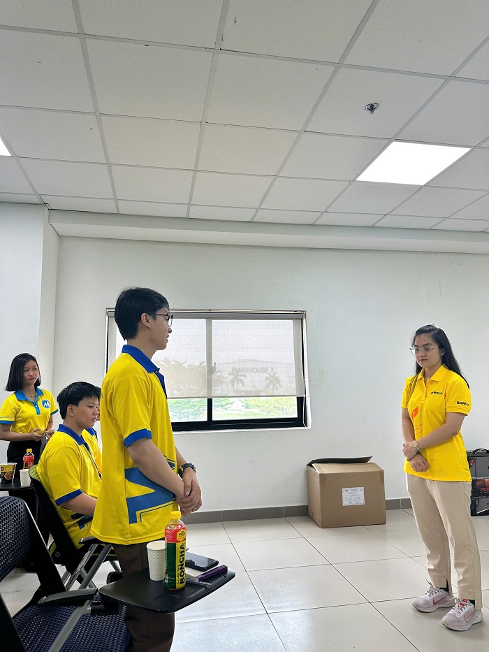 Tiếp nối hành trình, các bạn sinh viên UFM được theo chân anh Vũ và chị Bình đi khám phá từng khu vực sản xuất mì và nước uống boncha của nhà máy UNIBEN. Lộ trình tham quan được sắp xếp bài bản, bắt đầu từ dây chuyền sản xuất mì hiện đại, nơi các bạn tận mắt chứng kiến quy trình tạo ra những gói mì chất lượng. Sau đó, đoàn di chuyển đến dây chuyền sản xuất và đóng gói nước giải khát, nơi công nghệ tiên tiến đảm bảo sự chính xác và vệ sinh. Cuối cùng, các bạn ghé thăm kho vận rộng lớn của UNIBEN, nơi lưu trữ và phân phối sản phẩm với quy mô ấn tượng, mang đến cái nhìn toàn diện về quy trình sản xuất đạt chuẩn công nghệ tiên tiến và logistics của một thương hiệu hàng đầu Việt Nam.