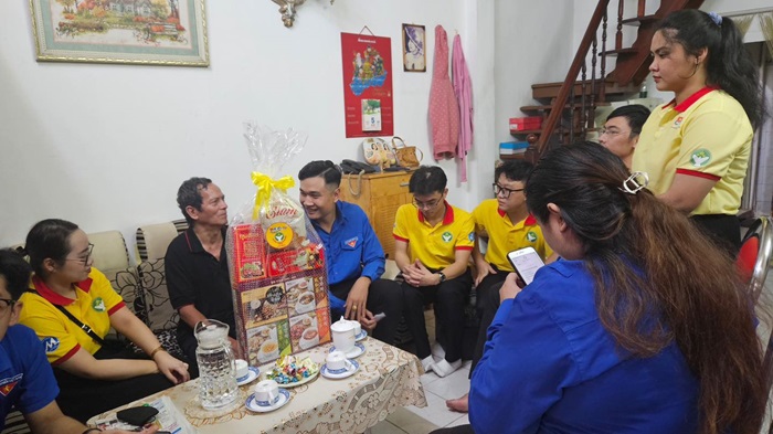 Chiến sĩ tình nguyện Khoa Thương mại thăm hỏi và tặng quà cho các gia đình chính sách tại địa bàn phường 11, quận Phú Nhuận