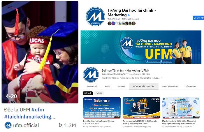 Ngoài ra, UFM đang đầu tư, phát triển các kênh truyền thông trên các nền tảng mạng xã hội và gặt hái được nhiều thành công; là công cụ truyền thông hiệu quả trong thời đại ngày nay với đối tượng chủ yếu là gen Z. Cụ thể, kênh Facebook của Trường đã có hơn 200.000 lượt người theo dõi, kênh Youtube với hơn 17.000 người, kênh Zalo, Tiktok cũng được các bạn trẻ đón nhận nhiệt tình với nhiều clip “triệu view”, được lên xu hướng.