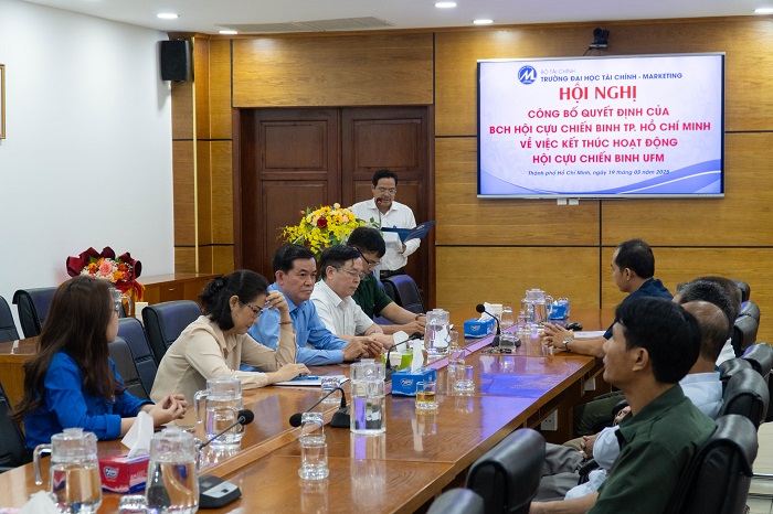 Sáng ngày 19/3/2025 tại Trường Đại học Tài chính – Marketing, Hội Cựu chiến binh Trường đã tổ chức Hội nghị công bố Quyết định của Ban Chấp hành Hội Cựu chiến binh TP. Hồ Chí Minh về việc kết thúc hoạt động của Hội Cựu chiến binh Trường Đại học Tài chính - Marketing (UFM). Theo Quyết định số 183/QĐ-CCB ngày 13/3/2025 của Ban Chấp hành Hội Cựu chiến binh TP. Hồ Chí Minh, Hội Cựu chiến binh UFM sẽ kết thúc hoạt động kể từ ngày 31/3/2025. Các cựu chiến binh UFM hiện là viên chức, người lao động của Trường sẽ được giới thiệu chuyển sinh hoạt Hội Cựu chiến binh theo quy định.