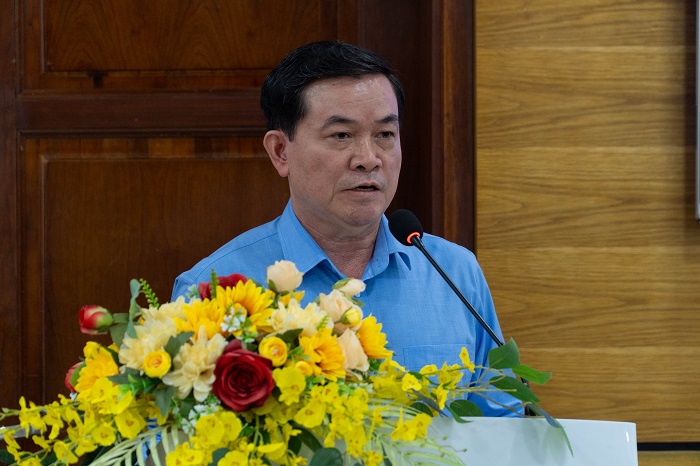 TS. Nguyễn Xuân Hiệp, Phó Bí thư Đảng ủy, Chủ tịch Công đoàn trường phát biểu tại Hội nghị