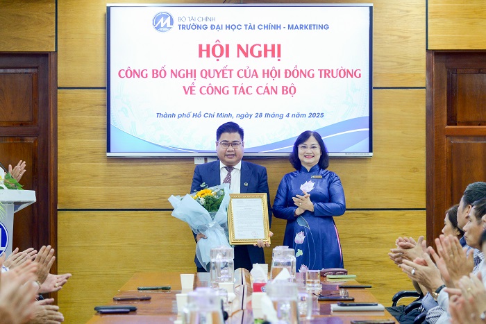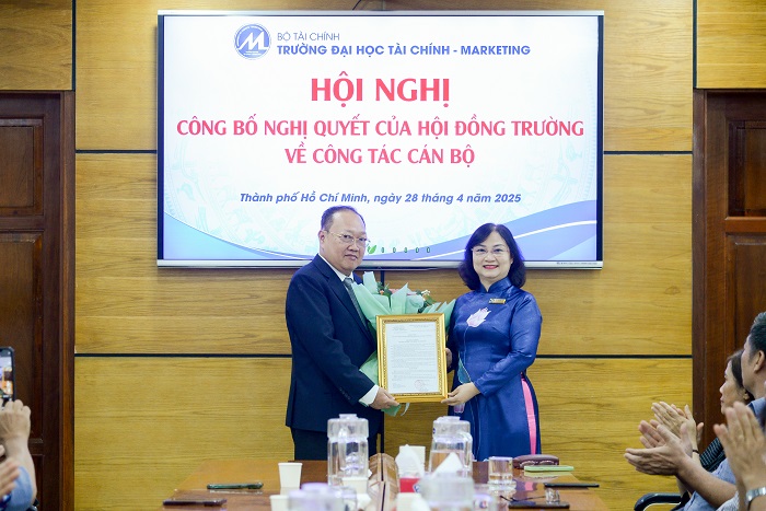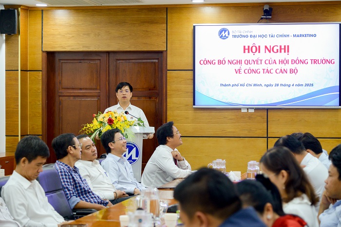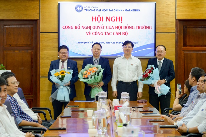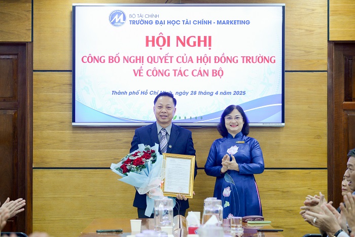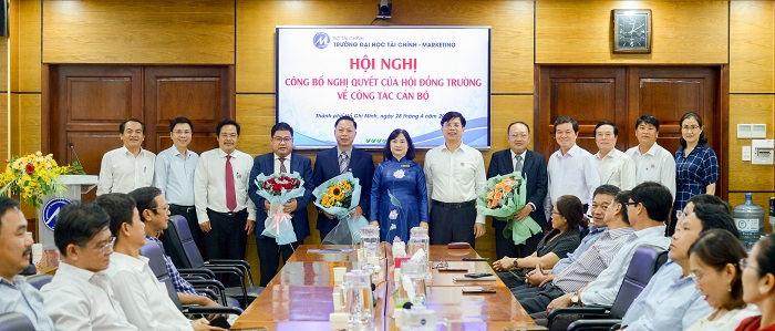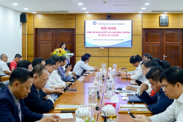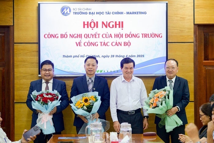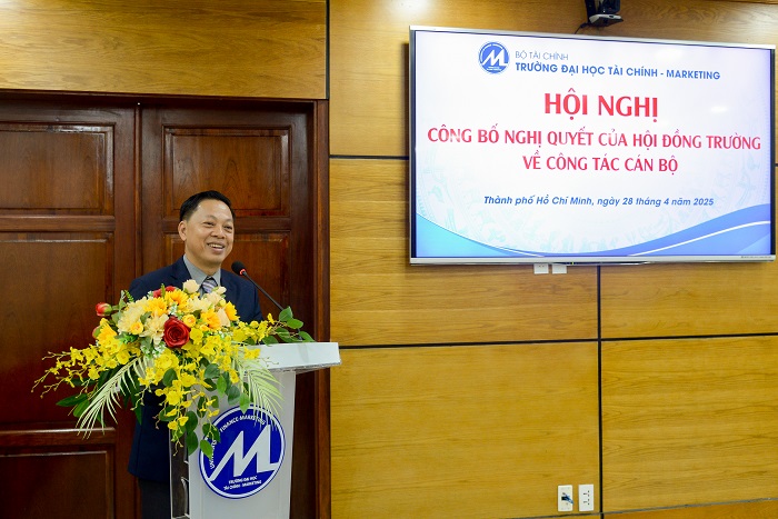 Chiều ngày 28/4/2025, tại Trụ sở 778 Nguyễn Kiệm, Phường 4, quận Phú Nhuận, TP. Hồ Chí Minh, Hội đồng trường Trường Đại học Tài chính - Marketing đã tổ chức Hội nghị công bố Nghị quyết của Hội đồng trường bổ nhiệm các Phó Hiệu trưởng Trường Đại học Tài chính - Marketing.