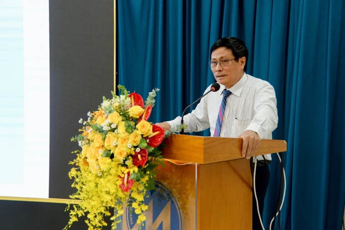 PGS.TS Trần Hoàng Ngân, Đại biểu Quốc Hội, Viện trưởng Viện Nghiên cứu phát triển Tp.HCM, nguyên Hiệu trưởng Nhà trường phát biểu tại Hội thảo