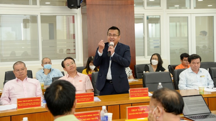 Thầy Hứa Minh Tuấn, Nguyên Phó Hiệu trưởng Nhà trường phát biểu tại Hội thảo