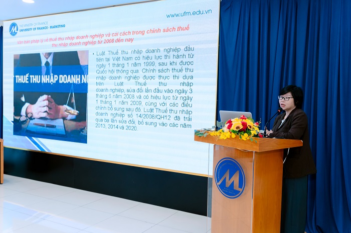 ThS. Trần Thị Mơ với tham luận “Cải cách hệ thống chính sách thuế thu nhập doanh nghiệp gắn với cơ cấu lại thu ngân sách nhà nước”