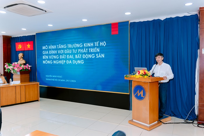 PGS. TS Nguyễn Minh Ngọc với tham luận “Mô hình tăng trưởng kinh tế hộ gia đình và đầu tư phát triển đất đai, bất động sản nông nghiệp”