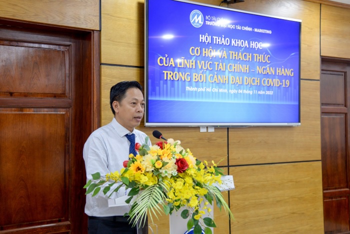 Sáng ngày 04/11/2022, Trường Đại học Tài chính – Marketing (UFM) đã tổ chức Hội thảo khoa học với chủ đề “Cơ hội và thách thức của ngành Tài chính – Ngân hàng trong bối cảnh đại dịch Covid-19”. Tham dự và chủ trì Hội thảo có sự hiện diện của TS. Lê Trung Đạo, Phó Hiệu trưởng Trường Đại học Tài chính – Marketing; PGS.TS Nguyễn Thị Mỹ Linh, Phó Trưởng Khoa Tài chính – Ngân hàng, Trường Đại học Tài chính – Marketing; TS. Trần Quốc Tuấn, Giám đốc Trung Tâm NCKH và Đào tạo Chứng Khoán, Ủy ban chứng khoán Nhà Nước cùng đông đảo các nhà khoa học, đại diện các doanh nghiệp và các thầy cô giảng viên trong, ngoài trường.
