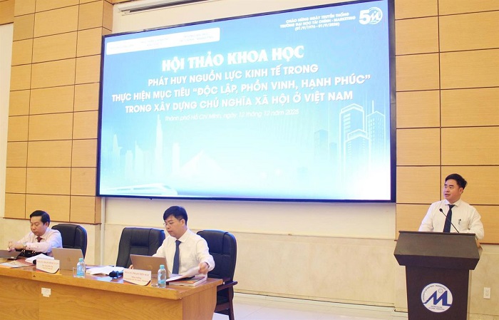 Sáng ngày 12/12/2025, Trường Đại học Tài chính – Marketing phối hợp với Tạp chí Cộng sản và Học viện Chính trị khu vực II tổ chức Hội thảo: Phát huy nguồn lực kinh tế trong thực hiện mục tiêu “độc lập, phồn vinh, hạnh phúc” trong xây dựng chủ nghĩa xã hội ở Việt Nam.