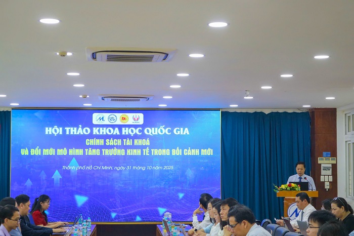 Chiều ngày 31/10/2025, tại cơ sở 27 Tân Mỹ, Trường Đại học Tài chính – Marketing (UFM) phối hợp cùng Học viện Chính trị khu vực II, Trường Đại học Kinh tế - Luật (ĐH Quốc gia TP.HCM) và Trường Đại học Sư Phạm Kỹ Thuật TP.HCM tổ chức Hội thảo quốc gia với chủ đề “Chính sách tài khóa và đổi mới mô hình tăng trưởng kinh tế trong bối cảnh mới”.