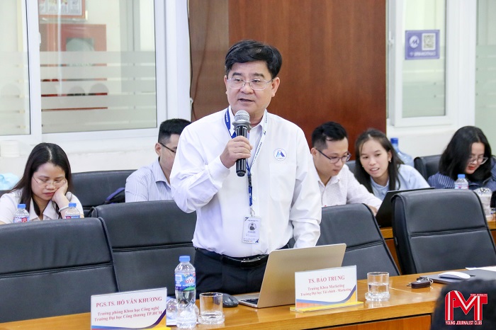 TS. Bùi Hồng Đăng – Phó hiệu trưởng HUIT gợi mở vấn đề về hành vi ứng xử của người tiêu dùng, quy mô cho mô hình chuyển đổi kép. Hình ảnh: Đức Huy - PVT