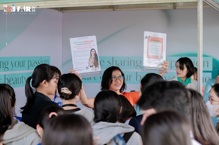 Không gian ngày hội được bố trí chuyên nghiệp với hệ thống gian hàng phong phú, đại diện cho nhiều lĩnh vực như tài chính – ngân hàng, kế toán – kiểm toán, marketing, thương mại điện tử, logistics, công nghệ thông tin, bất động sản, nhà hàng – khách sạn... Tại đây, sinh viên được trực tiếp tiếp cận thông tin tuyển dụng, tham gia phỏng vấn nhanh, thử sức với các trò chơi kỹ năng và lắng nghe chia sẻ từ đại diện doanh nghiệp về xu hướng thị trường lao động hiện nay.
