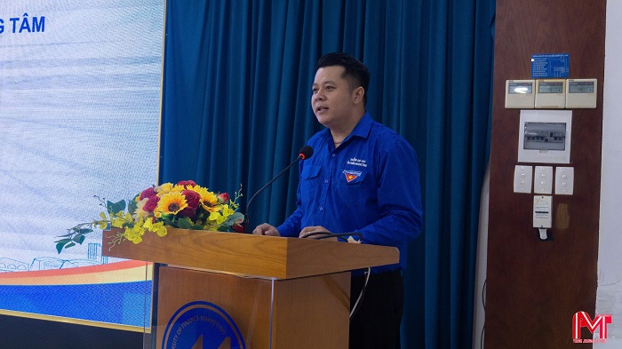 Đồng chí Nguyễn Tiến Khôi, Bí thư Đoàn trường báo cáo tại Lễ khởi động