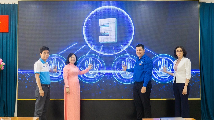 PGS.TS Hồ Thủy Tiên, Bí thư Đảng ủy, Chủ tịch Hội đồng trường TS. Nguyễn Thanh Nhã, Ủy viên BTV Đảng ủy, Trưởng khoa Quản lý công – BĐS; ThS. Nguyễn Lai Dương Phong, Trưởng phòng Công tác sinh viên, ThS. Nguyễn Tiến Khôi, Bí thư Đoàn trường thực hiện nghi thức khởi động