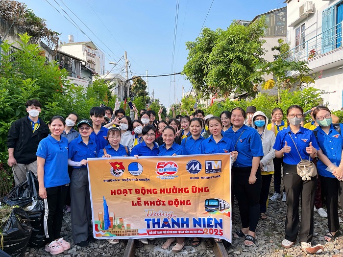 Đoàn khoa Marketing phối hợp cùng Đoàn phường 4, Phú Nhuận vệ sinh tuyến đường sắt bắt qua địa bàn phường