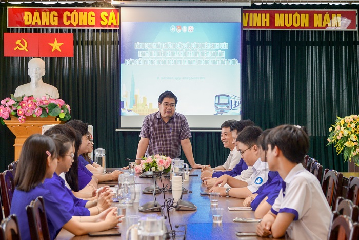 Lãnh đạo Nhà trường thăm hỏi, động viên sinh viên UFM tham gia diễu hành Đại lễ 30/4