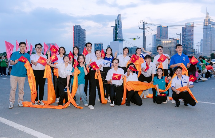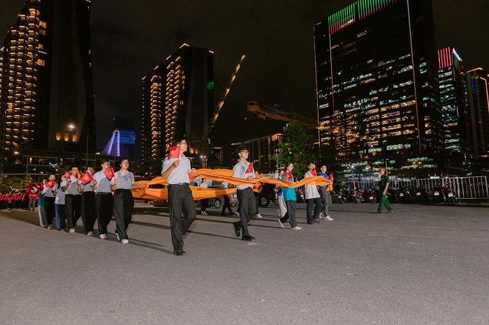 Tham dự có TS. Cao Tấn Huy, Phó Hiệu Trưởng; ThS. Nguyễn Lai Dương Phong, Trưởng phòng Công tác sinh viên; ThS. Nguyễn Tiến Khôi, Bí thư Đoàn trường cùng các đồng chí trong BTV Đoàn trường, BTK Hội Sinh viên trường và 9 bạn đoàn viên, thanh niên, sinh viên UFM được tuyển chọn tham gia diễu hành.