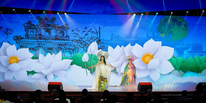 Phần thi trình diễn áo dài được các thí sinh thể hiện đặc sắc, ấn tượng