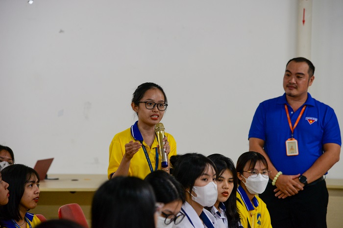 Các bạn sinh viên ngành Quản trị kinh doanh chuyên ngành Quản trị bán hàng thật sự bùng cháy khi liên tiếp đặt ra nhiều câu hỏi liên quan đến cách vận hành, quy trình cũng như các tình huống thực tế mà các anh chị đã từng gặp qua 10 năm làm việc tại Co.opXtra Linh Trung, những lời chia sẻ ấy chính là chìa khóa vàng mở cửa cho nhiều cơ hội việc làm của UFMers trong tương lai.