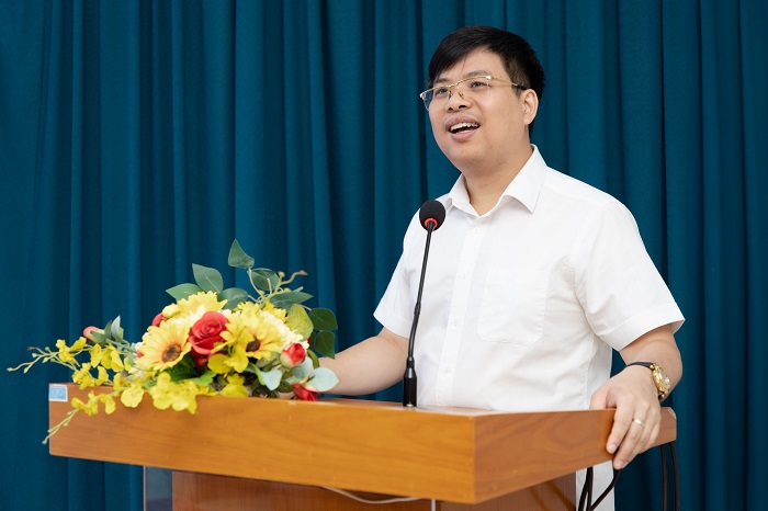 PGS.TS Phạm Tiến Đạt, Bí thư Đảng ủy, Hiệu trưởng Nhà trường phát biểu tại buổi gặp mặt