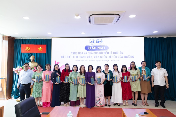 Ngày 6/3/2026, Trường Đại học Tài chính – Marketing đã tổ chức chương trình “Gặp mặt, tặng hoa Tiến sĩ nữ tiêu biểu” nhằm tôn vinh, ghi nhận những đóng góp nổi bật của đội ngũ nữ giảng viên, viên chức có học vị tiến sĩ trở lên trong công tác đào tạo, nghiên cứu khoa học và quản lý. Hoạt động không chỉ lan tỏa không khí tri ân nhân ngày 8/3, mà còn khẳng định cam kết của UFM trong việc xây dựng môi trường làm việc bình đẳng – nhân văn, nơi phụ nữ được ghi nhận, được trao cơ hội và tiếp tục phát huy vai trò trong chiến lược phát triển nguồn nhân lực chất lượng cao của Nhà trường.