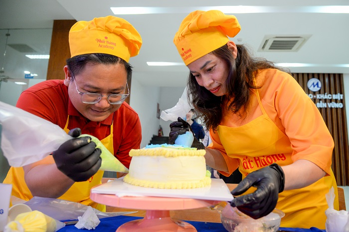 Điểm “bùng nổ” của chương trình đến từ Hội thi trang trí bánh kem với bầu không khí sôi nổi, vui tươi và đầy tính sáng tạo. Các đội thi đã tranh tài bởi sự khéo tay bằng những mẫu bánh được chăm chút tỉ mỉ, phối màu tinh tế, trang trí đẹp mắt và mang nhiều ý tưởng độc đáo. Mỗi chiếc bánh không chỉ là sản phẩm dự thi, mà còn thể hiện tinh thần đồng đội, sự gắn kết giữa các đơn vị và nguồn năng lượng tích cực lan tỏa trong ngày 8/3. Nhiều phần thi khiến khán giả ấn tượng bởi tính thẩm mỹ, độ công phu và thông điệp gửi gắm về sự trân trọng dành cho phụ nữ.