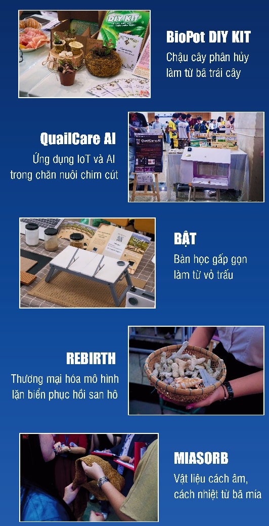 Các dự án cho thấy tư duy sáng tạo đa dạng của sinh viên UFM, đồng thời thể hiện sự kết hợp giữa công nghệ, vật liệu mới, kinh tế tuần hoàn và yếu tố bền vững - những xu hướng chủ đạo của đổi mới sáng tạo trong bối cảnh hiện nay.