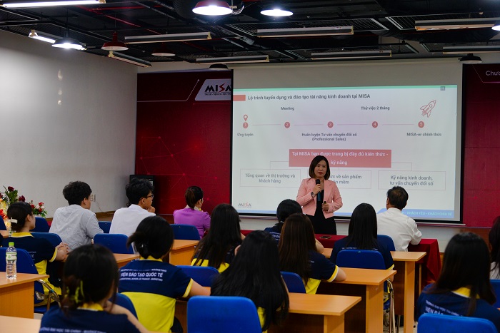 Đến với MISA, các bạn sinh viên được lắng nghe những chia sẻ thú vị về quá trình hình thành và phát triển, mô hình hoạt động cũng như cách thức vận hành của công ty, ... và đặc biệt hơn cả là kinh nghiệm thực tế từ các anh/chị về môi trường làm việc, những khó khăn lúc đầu có thể gặp phải và những bài học kinh nghiệm quý báu được rút ra trong quá trình gắn bó với từng vị trí việc làm, xác định những kỹ năng cần thiết để phục vụ các vị trí việc làm từ kinh doanh.