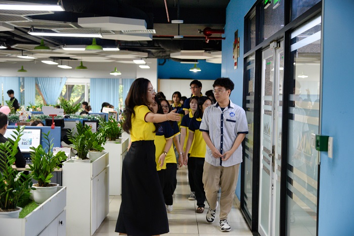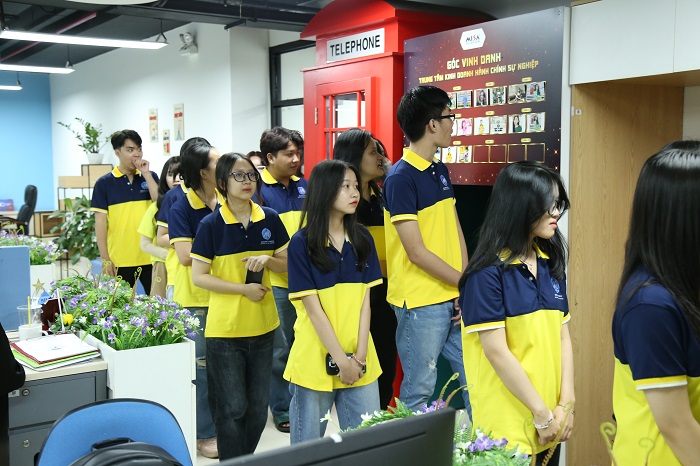 Không dừng lại ở đó, trong buổi tham quan ngày hôm nay, các bạn sinh viên còn có cơ hội tham quan các phòng ban của doanh nghiệp và được trải nghiệm với các sản phẩm, phần mềm, ứng dụng tích hợp của Công ty MISA như phần mềm Quản lý bán hàng, Quản trị doanh nghiệp, phần mềm Kế toán, phần mềm quản lý hệ thông Nhà hàng, Khách sạn và trải nghiệm môi trường làm việc của Công ty MISA. Sự chu đáo từ khâu chuẩn bị, tác phong và thái độ chuyên nghiệp của các anh/chị cũng là điều mà các bạn sinh viên có thể học hỏi. Những câu hỏi được đặt ra từ các bạn như Em học ngành kế toán vậy có phù hợp làm việc với Sale hay ko? Đối với những người học công nghệ thì có những lợi thế như thế nào tại công ty? Nếu em học chương trình quốc tế thì khi thực tập em có thể tiếp cận với các vị trí việc làm có hướng hợp tác với nước ngoài hay không? Những kỹ năng nào để mình có thể quản lý thời gian hiệu quả đối với sinh viên và đối với từng vị trí việc làm tại công ty? Điều kiện để có thể trở thành một thực tập sinh tiềm năng? Cơ hội nào dành cho các sinh viên học ngành marketing hay kinh doanh quốc tế?...