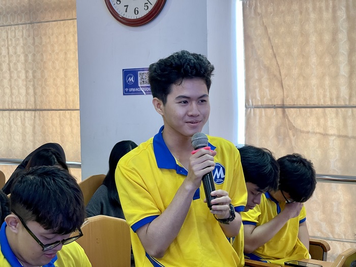 Các bạn sinh viên không chỉ hỏi thêm những kiến thức xoay quanh lĩnh vực chuyên môn mà các bạn còn muốn nghiên cứu thêm về một góc nhìn phía doanh nghiệp đối với Gen Z nói chung như cơ hội phát triển, các chứng chỉ liên quan của nghề du lịch… Chính những thắc mắc của các bạn đã khiến cho hội trường thêm náo nhiệt vì sự năng động, ham học hỏi của các bạn. Hay nhất của chương trình là diễn giả Nguyễn Thanh Sơn đã không ngần ngại chia sẻ góc nhìn khách quan về các vấn đề xoay quanh Gen Z trong đó chú trọng độ nhanh, nhạy, bắt kịp xu thế công nghệ mới tuy nhiên cần rèn luyện cho mình nhiều kỹ năng hơn nữa vì thế hệ các bạn ít va chạm thực tế nên độ xử lý tình huống sẽ không đạt được kết quả cao như mong đợi. UFMers luôn sẵn sàng nắm bắt và thể hiện tinh thần xung phong trong tât cả khía cạnh từ viêc học tập trên ghế nhà trường đến quan sát trực tiếp thực trạng nghề nghiệp.