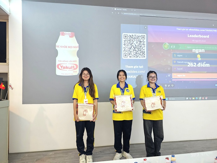 Bên cạnh đó, chương trình còn dành thời lượng cho phần trao đổi, thảo luận giữa sinh viên và chuyên gia của Yakult. Nhiều câu hỏi xoay quanh xu hướng tiêu dùng sản phẩm tốt cho sức khỏe, chiến lược xây dựng thương hiệu, trách nhiệm xã hội của doanh nghiệp, cũng như yêu cầu về năng lực, kỹ năng đối với nguồn nhân lực trẻ đã được đặt ra và giải đáp. Qua tương tác trực tiếp, sinh viên hiểu rõ hơn yêu cầu thực tế của thị trường lao động, từ đó có định hướng rèn luyện bản thân phù hợp trong quá trình học tập tại Trường.