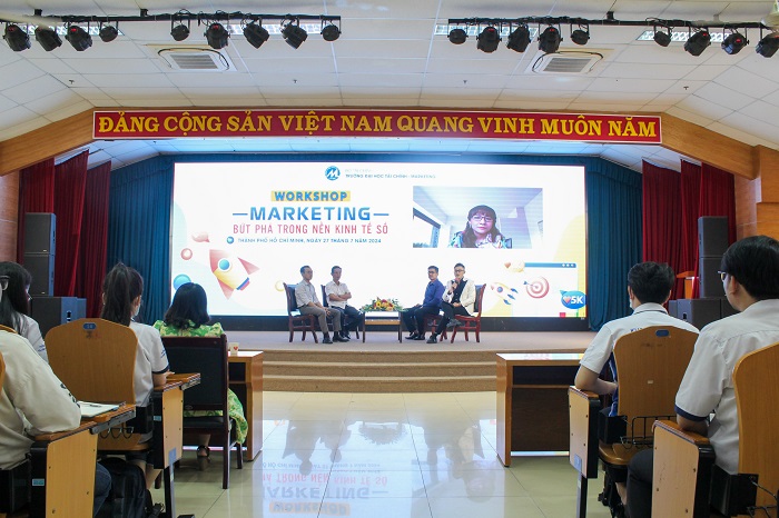 Sự bùng nổ của Internet đã đánh dấu một kỷ nguyên mới cho ngành Marketing. Mặc dù đã tồn tại từ lâu, nhưng chỉ trong vài năm gần đây, khi công nghệ số trở nên phổ biến hơn, ngành học này mới thực sự có nhiều cơ hội phát triển và bứt phá. Điều này khiến nhiều sinh viên băn khoăn không biết nên chọn lĩnh vực nào trong tương lai để phát triển cơ hội nghề nghiệp của mình, bởi Marketing bao gồm nhiều mảng như Quảng cáo (Advertising), Marketing kỹ thuật số (Digital Marketing), Tiếp thị thương mại (Trade Marketing),…Hiểu được những băn khoăn ấy của sinh viên, sáng ngày 26/7/2024, Trường Đại học Tài chính - Marketing (UFM) đã tổ chức buổi talkshow chủ đề “Marketing - Bứt phá trong nền kinh tế số” với mong muốn đồng hành cùng sinh viên khám phá những xu hướng mới và thích nghi với công nghệ mới trên con đường khai phá ngành nghề và phát triển bản thân, trau dồi kiến thức, kỹ năng và kinh nghiệm trong lĩnh vực Marketing.