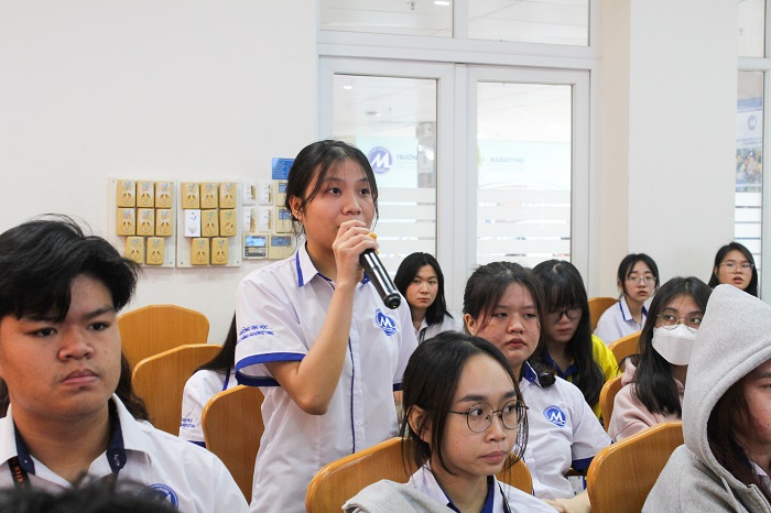 Trong suốt thời gian tham dự chương trình, các bạn sinh viên vô cùng hào hứng khi được các diễn giả với bề dày kinh nghiệm chia sẻ những bài học và thách thức sẽ gặp phải của một Marketer trong thời kì chuyển đổi số. Các bạn đã đặt ra nhiều câu hỏi thú vị về chiến lược của doanh nghiệp Việt Nam với các doanh nghiệp quốc tế, sự cạnh tranh của các doanh nghiệp đối với từng chiến lược sản phẩm trên thị trường như thế nào? Những câu hỏi cho thấy sự quan tâm sâu sắc từ các bạn trẻ UFM bởi không chỉ tập trung vào các khái niệm cơ bản mà còn đi sâu vào việc ứng dụng các công nghệ mới, chiến lược tiếp thị số, và cách tối ưu hóa trải nghiệm khách hàng trong môi trường kinh doanh hiện đại.
