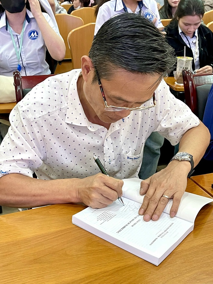 Kết thúc chương trình, Tiến sĩ Nguyễn Anh Tuấn đã dành tặng những quyền sách giáo trình quý giá mà Thầy cô đã bỏ rất nhiều tâm huyết để biên soạn nên “Xây dựng kế hoạch Marketing” do chính ông là chủ biên cho tất cả các bạn sinh viên đã có những câu hỏi hay, thiết thực và trọng tâm nhất tại talkshow. Quyển sách trao tay như tình cảm mà thầy cô dành cho các bạn sinh viên, mỗi trang sách như một tầng kiến thức được nâng lên. “Chúng em biết ơn những gì thầy cô đã làm cho thế hệ sinh viên hôm nay và mái trường UFM luôn là niềm tự hào trong lòng mỗi sinh viên, chúng em sẽ cố gắng học tập thật tốt, phát huy năng lực bản thân trong các vị trí việc làm ở tương lai để không phụ kỳ vọng và niềm tin mà thầy cô đã trao cho chúng em” em Lê Thịnh chia sẻ.