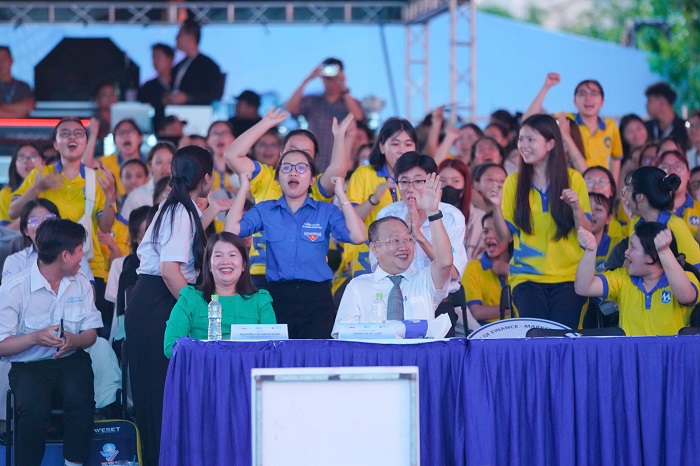 PGS.TS Phạm Quốc Việt, Phó Hiệu trưởng và ThS. Nguyễn Thị Kim Phụng, Phó Trưởng phòng Tuyển sinh, Truyền thông và Quan hệ doanh nghiệp tham dự chương trình, cùng các bạn sinh viên UFM cổ vũ nhiệt tình