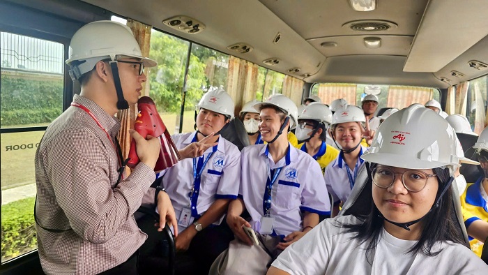 Hướng dẫn viên dẫn đoàn sinh viên UFM tham quan Nhà máy