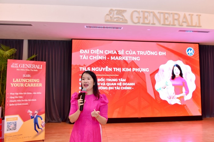 Trường Đại học Tài chính – Marketing chân thành cảm ơn quý Ban lãnh đạo, đội ngũ cán bộ - công nhân viên của Generali đã tạo nên một buổi tham quan tại văn phòng của Công ty vô cùng thú vị và ý nghĩa. Thạc sĩ Nguyễn Thị Kim Phụng – Phó Giám đốc Trung tâm Tuyển sinh và Quan hệ doanh nghiệp trân trọng cám ơn đến quý Công ty đã cùng đồng hành và tạo nên một chương trình mang ý nghĩa thiết thực đến sinh viên UFM, đồng thời Cô mong muốn doanh nghiệp tiếp tục hỗ trợ đồng hành với sinh viên nhiều hơn nữa trong các chuyên đề, thực hành nghề nghiệp, thực tập tốt nghiệp và vị trí việc làm. Đồng thơi, qua chương trình Cô mog muốn các bạn sinh viên phát huy hết khả năng sáng tạo, năng động, nhiệu huyết của mình khi đến với các chương trình thiết thực và bổ ích này, Cô mong các bạn cố gắng học tập, trang bị cũng như bước đầu hòa mình vào môi trường văn hóa của doanh nghiệp để có thể chuẩn bị hành trang tốt nhất cho minh sau khi rời ghế Nhà trường đến với doanh nghiệp, vừa nâng cao giá trị của bàn thân vừa góp phần nhỏ của mình trong sự phát triển chung của đất nước.