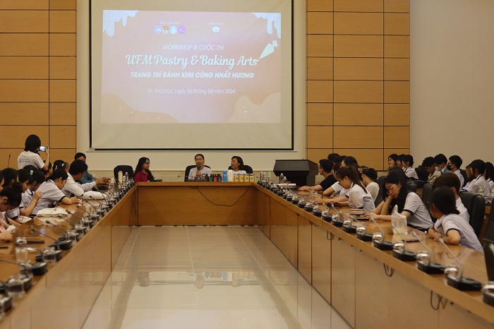 Buổi Worshop đã thu hút hơn 200 sinh viên của các ngành Quản trị nhà hàng và dịch vụ ăn uống, Quản trị khách sạn và Quản trị du lịch và lữ hành của Khoa Du lịch UFM đến tham dự và nghe chia sẻ về những bí quyết để có thể tạo ra được một chiếc bánh kem vừa ngon vừa bắt mắt đến từ các chuyên gia làm bánh của Trung tâm dạy nghề bánh Nhất Hương.