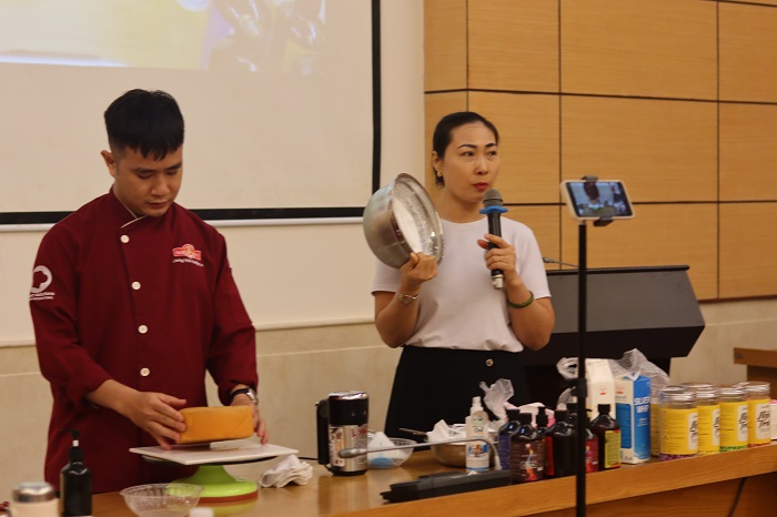 Trong suốt chương trình, các bạn sinh viên được giao lưu với các chuyên gia làm bánh của Trung tâm đầy kinh nghiệm, chuyên nghiệp và có tâm với nghề về những kinh nghiệm trong quá trình tạo ra một chiếc bánh kem ưng ý và hiểu hơn về những dụng cụ làm bánh, cách chế biến và bảo quản nguyên liệu sao cho chiếc bánh kem của chúng ta được đảm bảo về hình dáng, màu sắc, độ mềm cũng như hương vị sau khi hoàn thành.